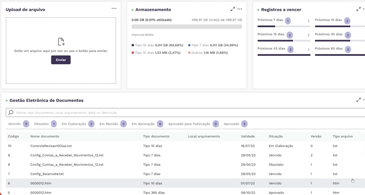 Armazenamento seguro, centralizado, com criptografia e controle de acessos, facilitando a implantação de um sistema de gestão da qualidade, de acordo com as normas ISO.