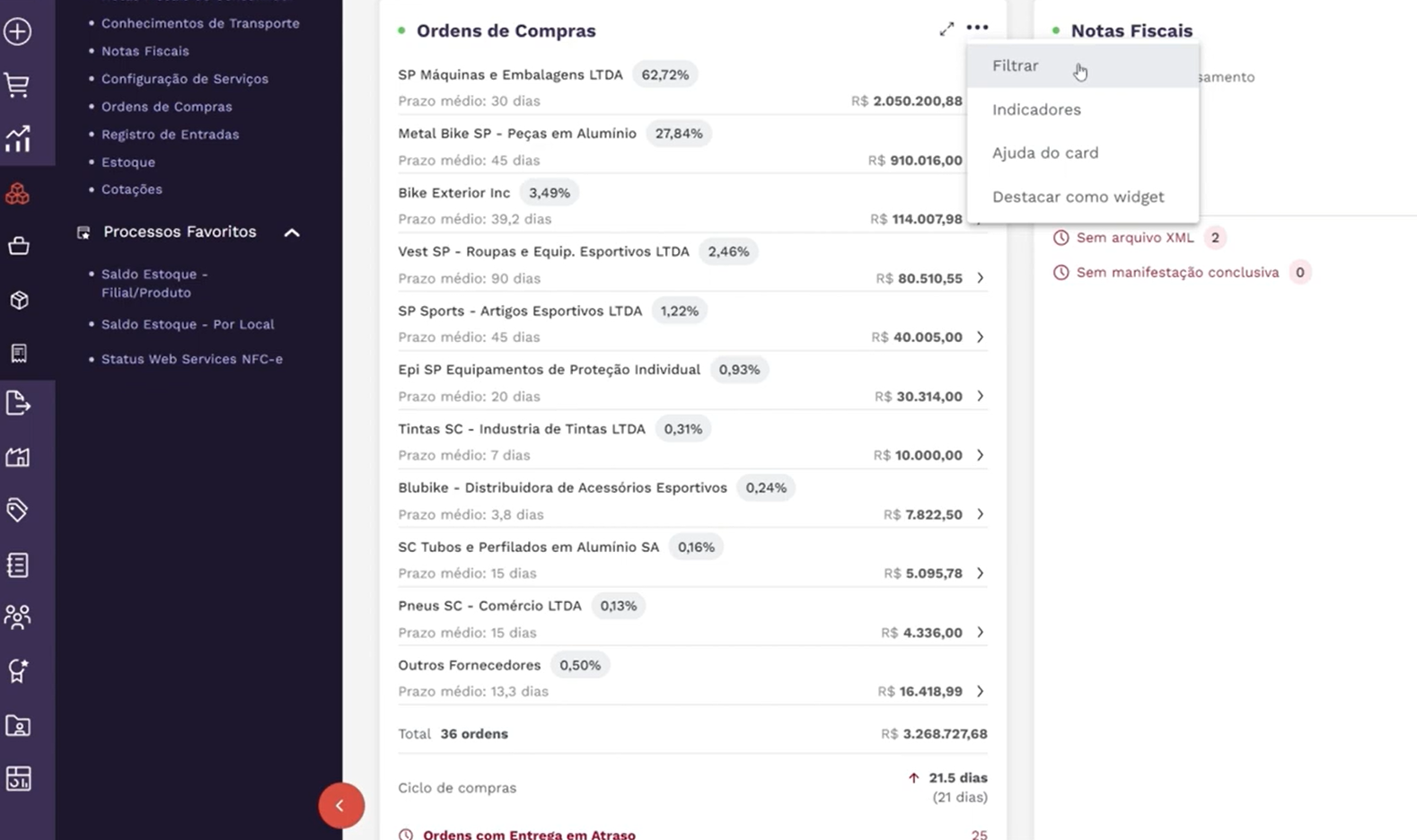 Uma gestão financeira, fiscal e de compras verdadeiramente eficiente exige integração, precisão e inteligência operacional. Com controle logístico apurado, reposição estratégica, inventário digital, rastreabilidade completa por lotes, localização e validade, além de valorização por custo médio, o processo ganha mais segurança e previsibilidade. Ao mesmo tempo, o gerenciamento de cotações, contratos, ordens de compra, notas, impostos e rateio de despesas por centro de custos automatiza rotinas, aprimora a análise da demanda e fortalece decisões mais ágeis, estratégicas e sustentáveis para o negócio.